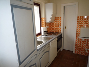 Geschirr und Hausrat für den täglichen Bedarf sind vorhanden, sowie Kaffeemaschine und Toaster.